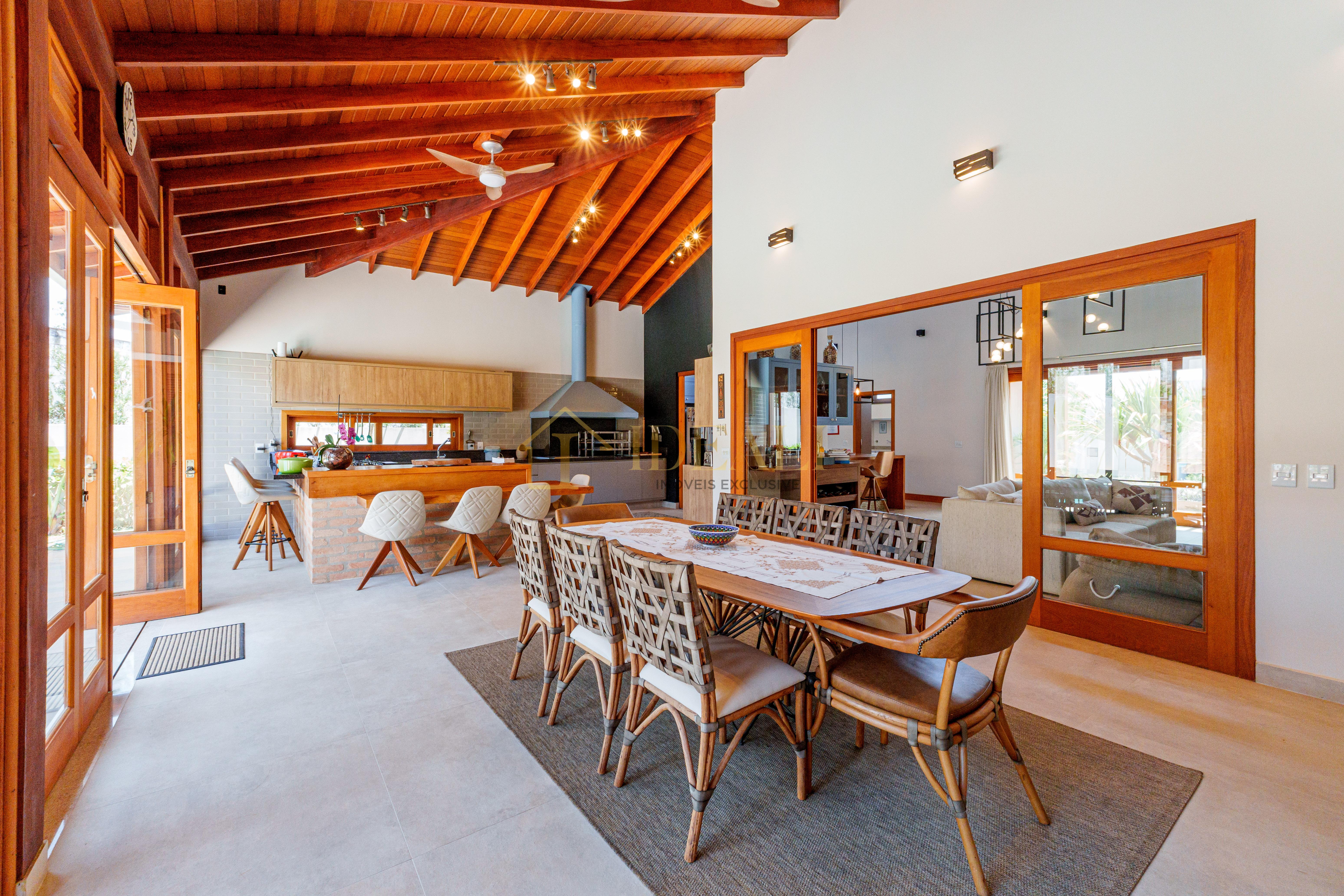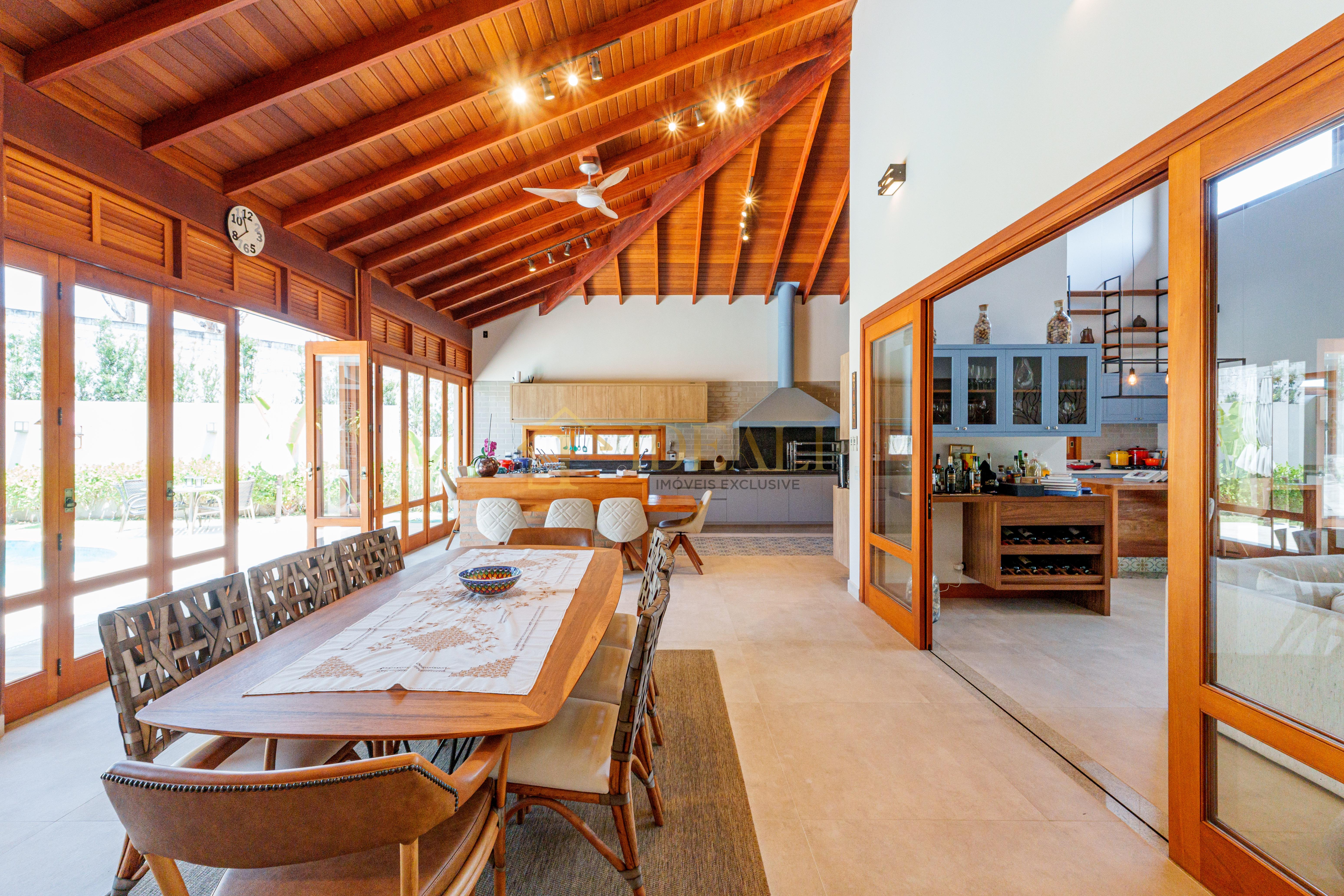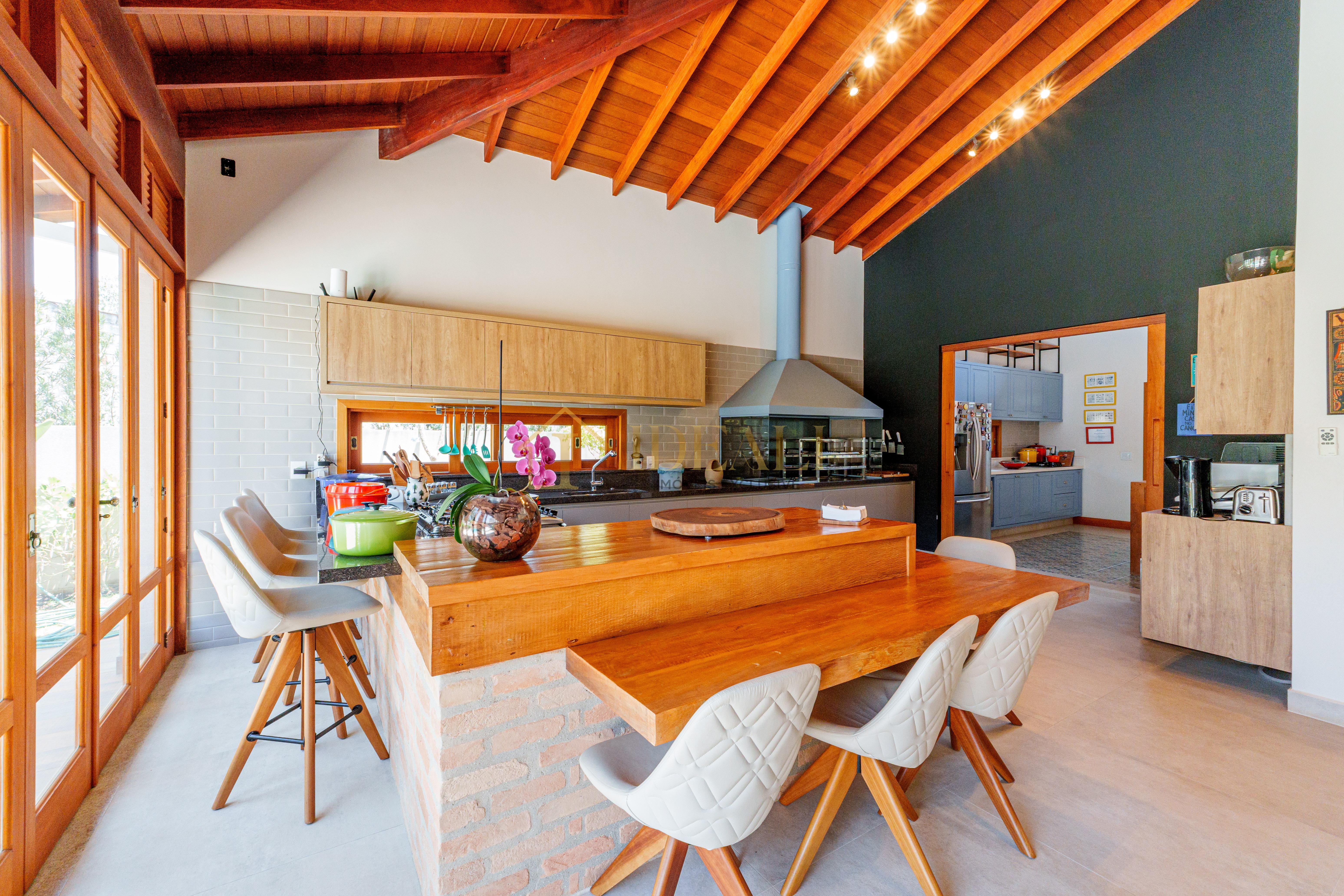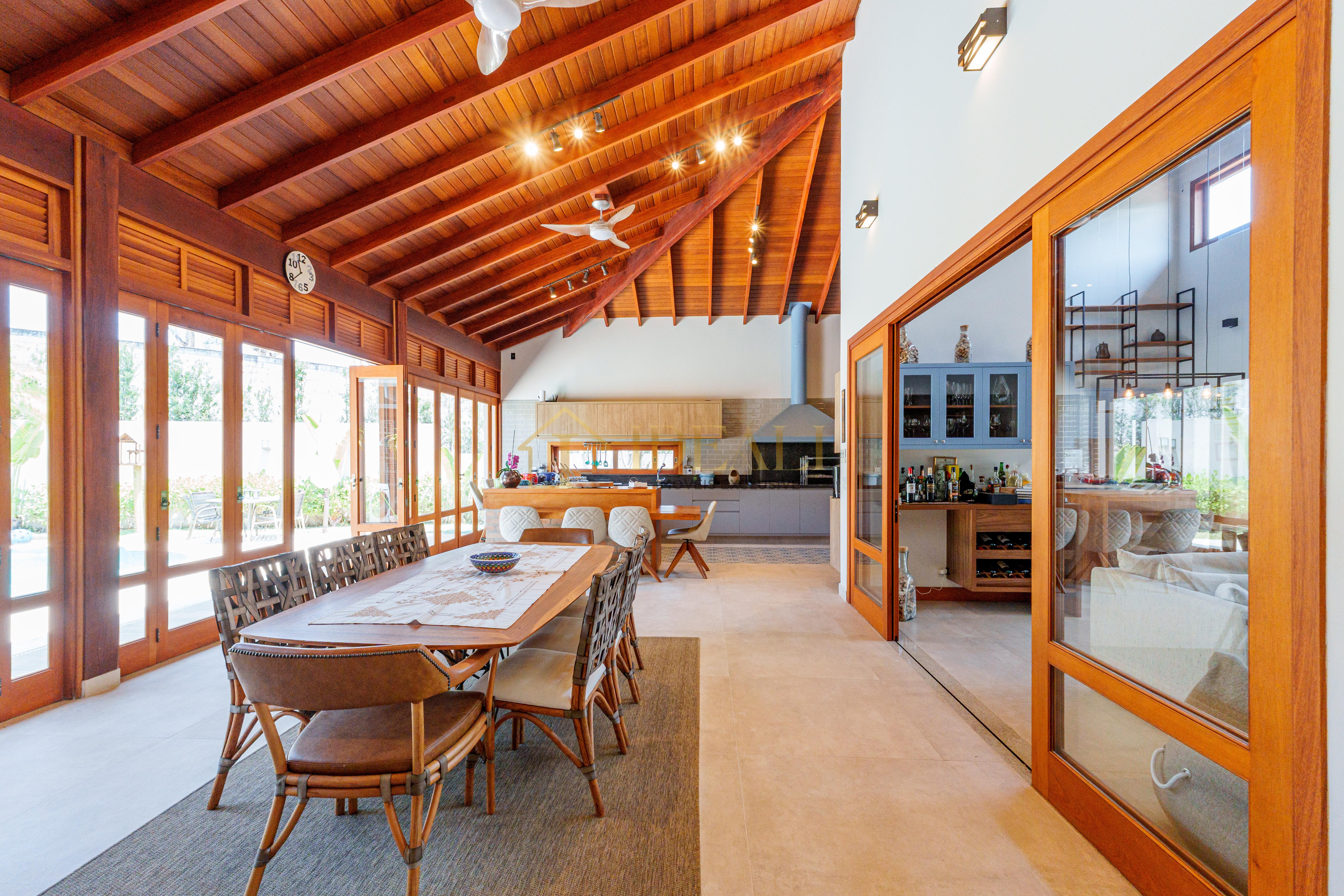 O telhado aparente, o forro de madeira e as esquadrias também em madeira tão aquele tom aconchegante, gostoso, aquele ar de casa de campo...