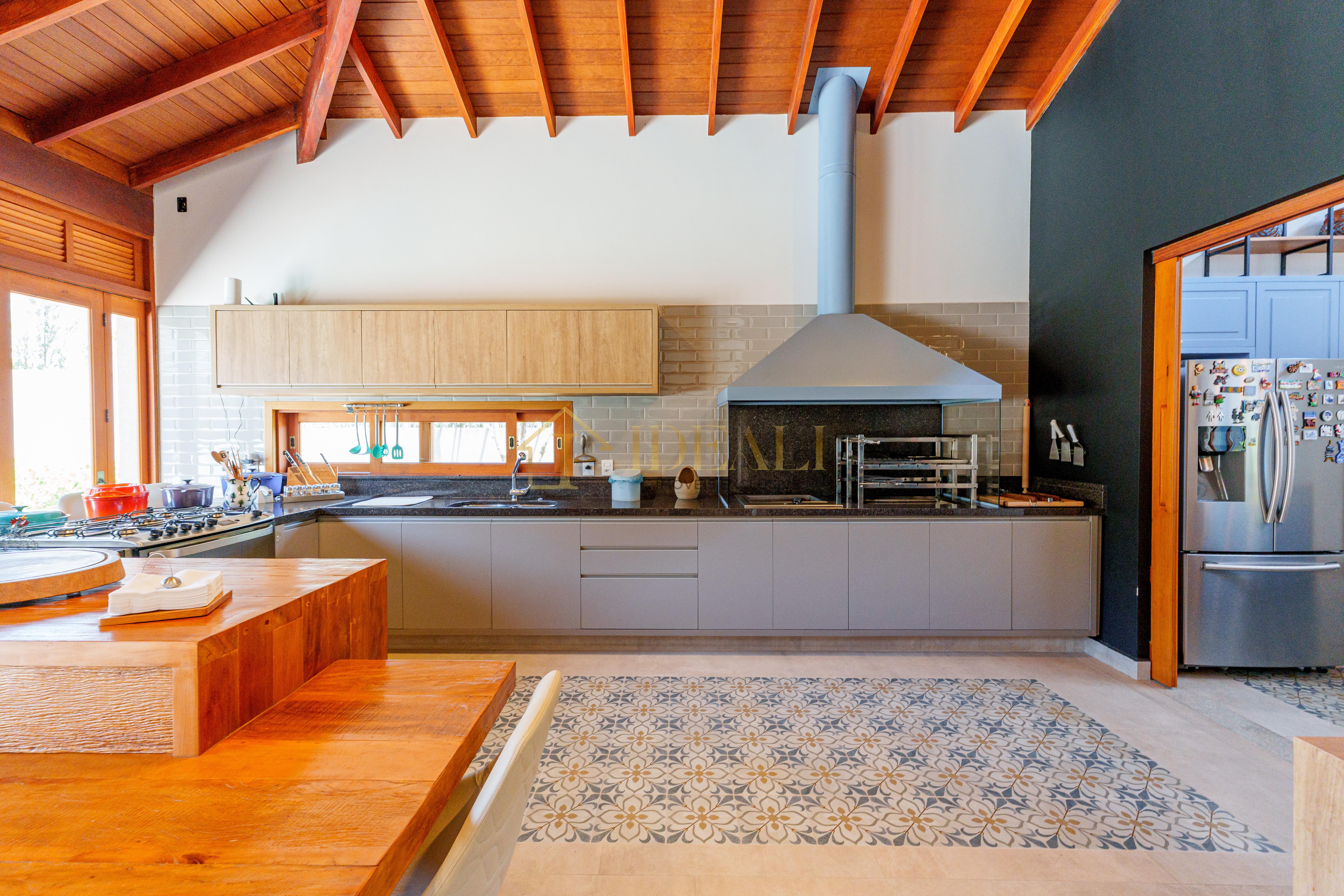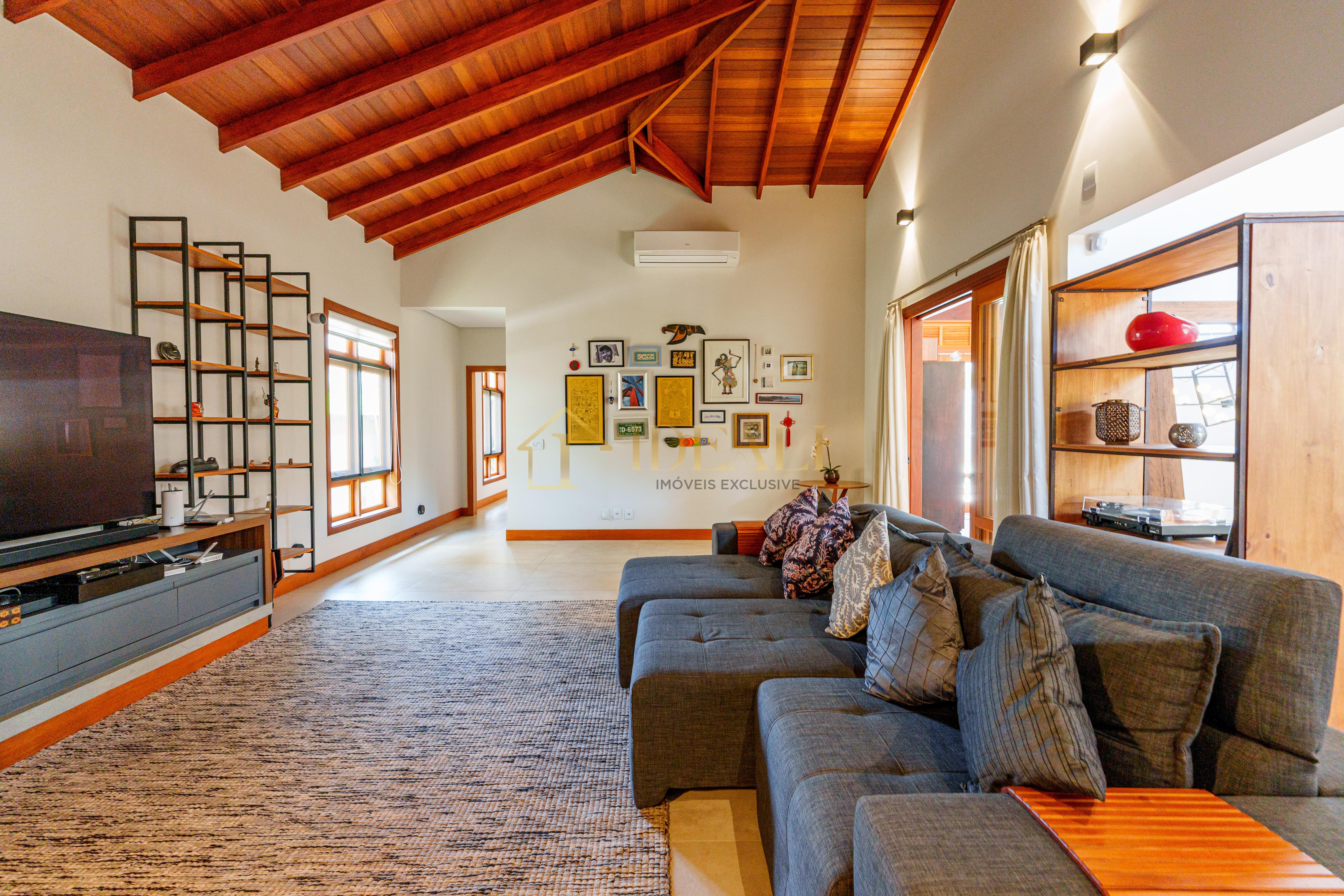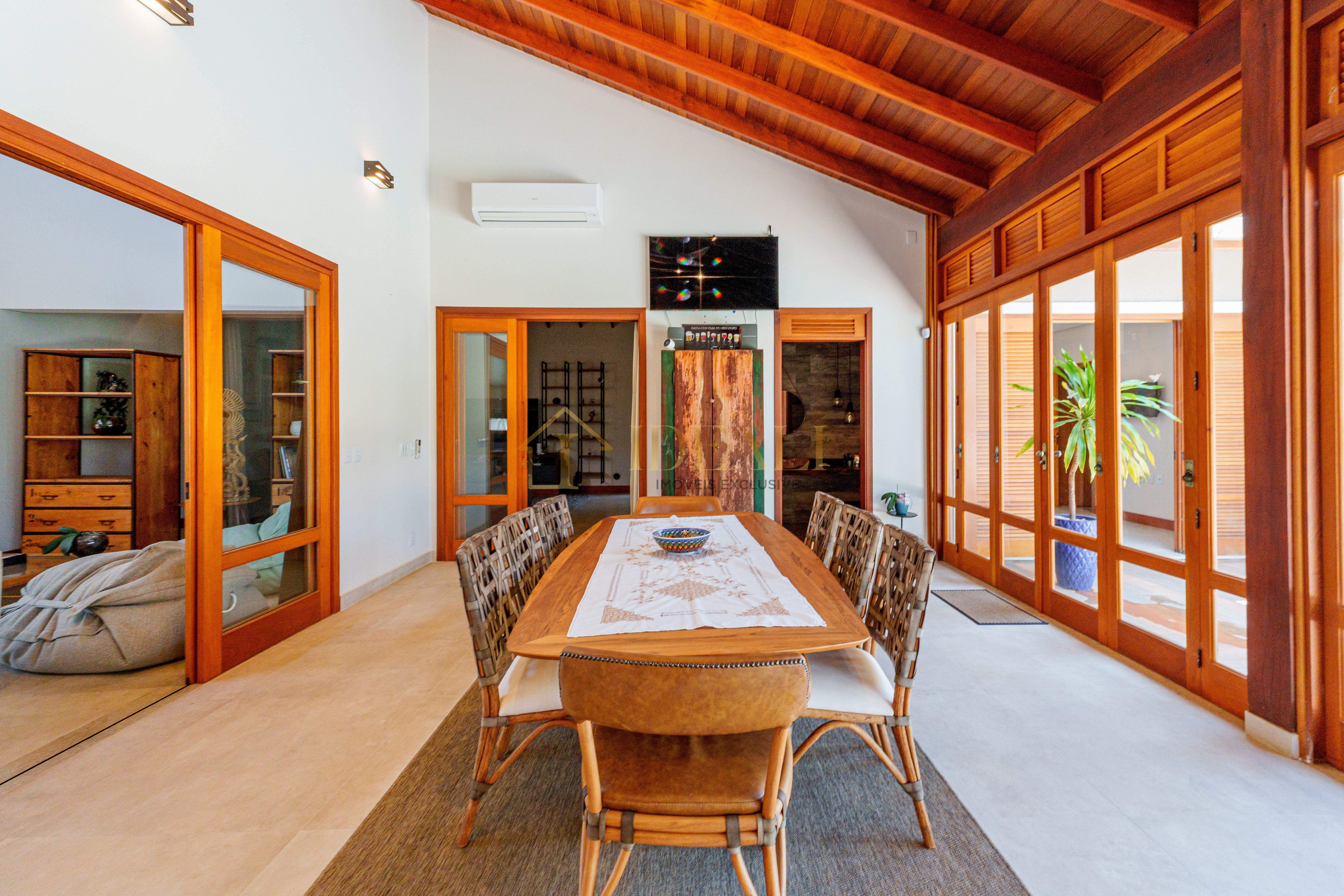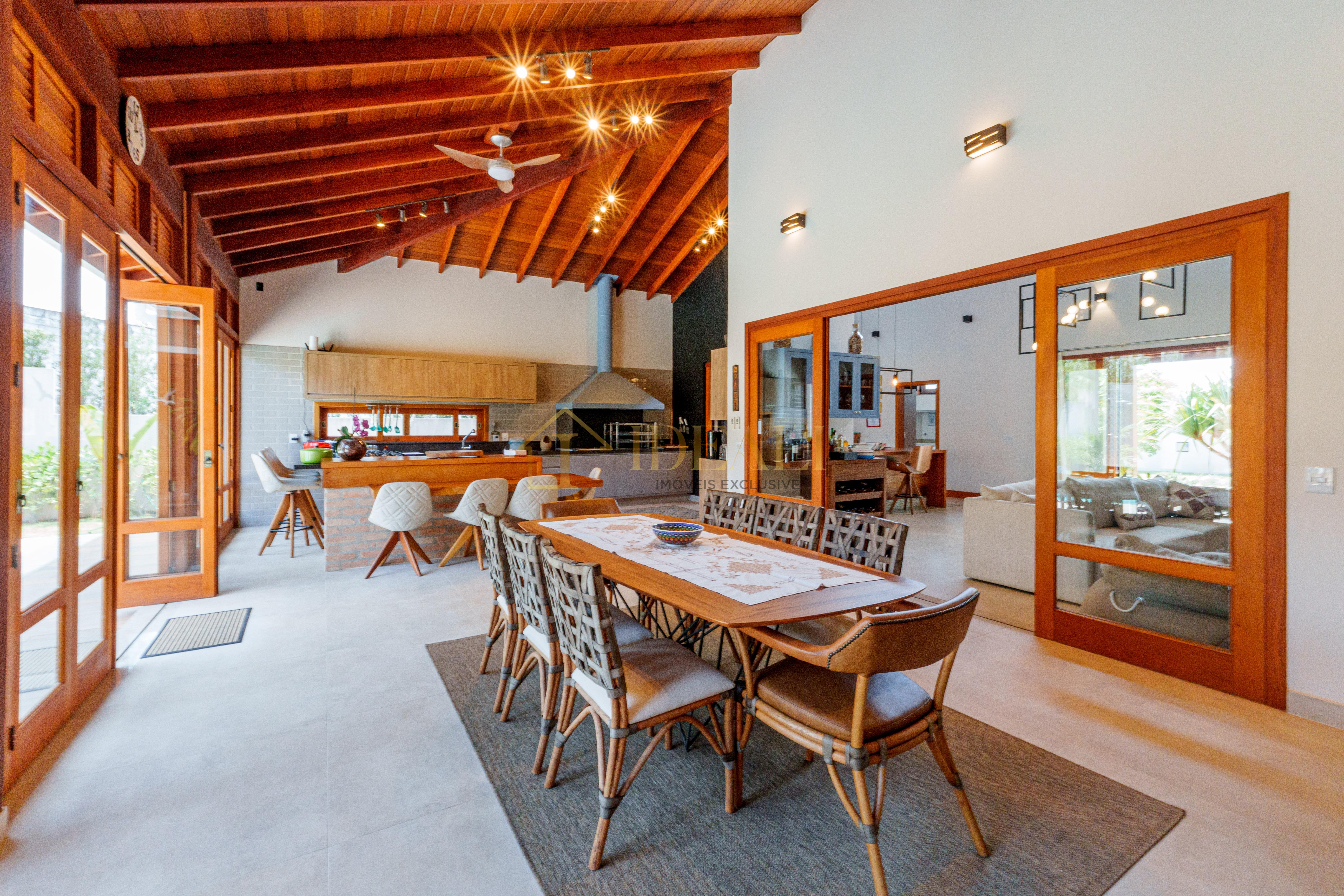 O telhado aparente, o forro de madeira e as esquadrias também em madeira tão aquele tom aconchegante, gostoso, aquele ar de casa de campo...