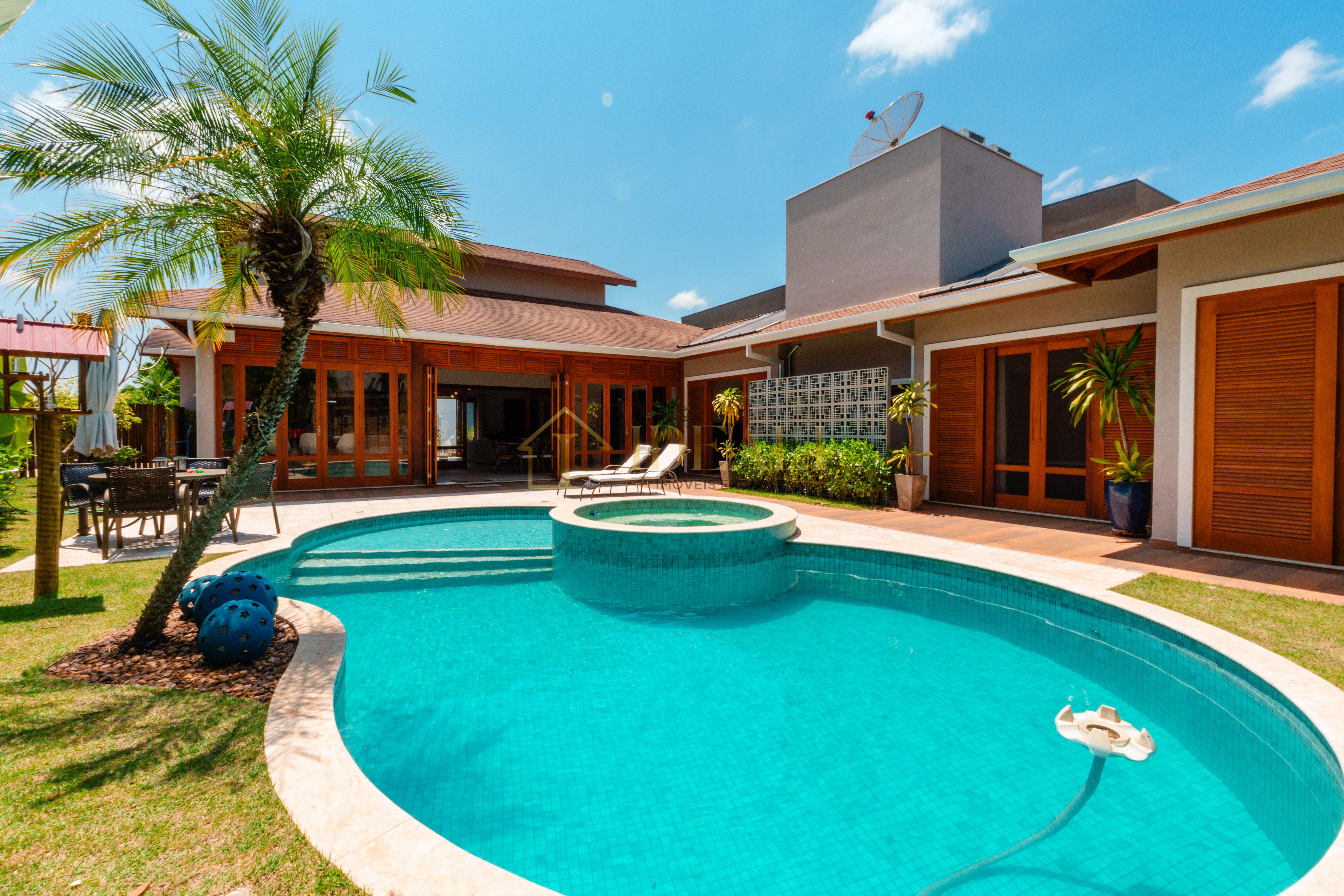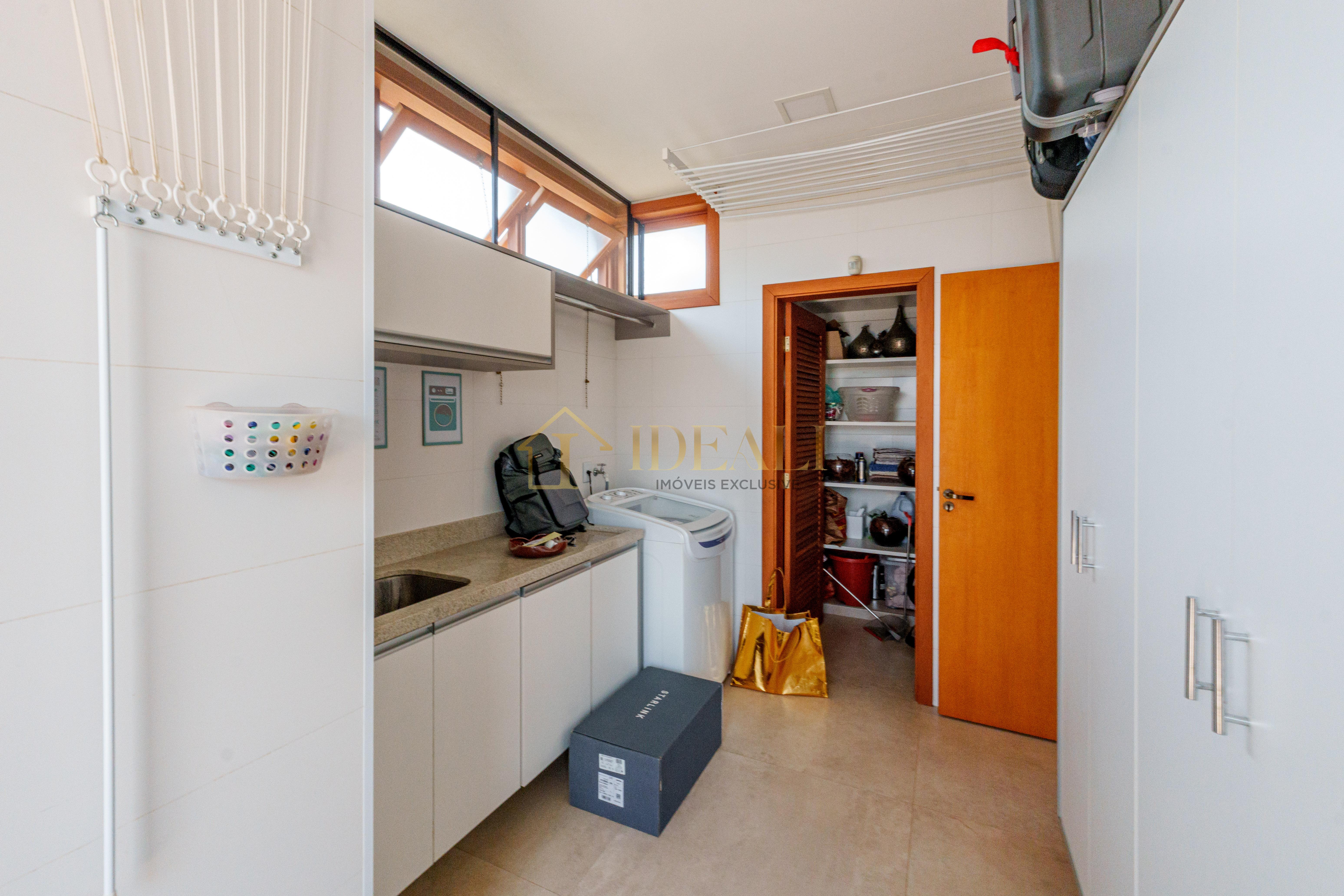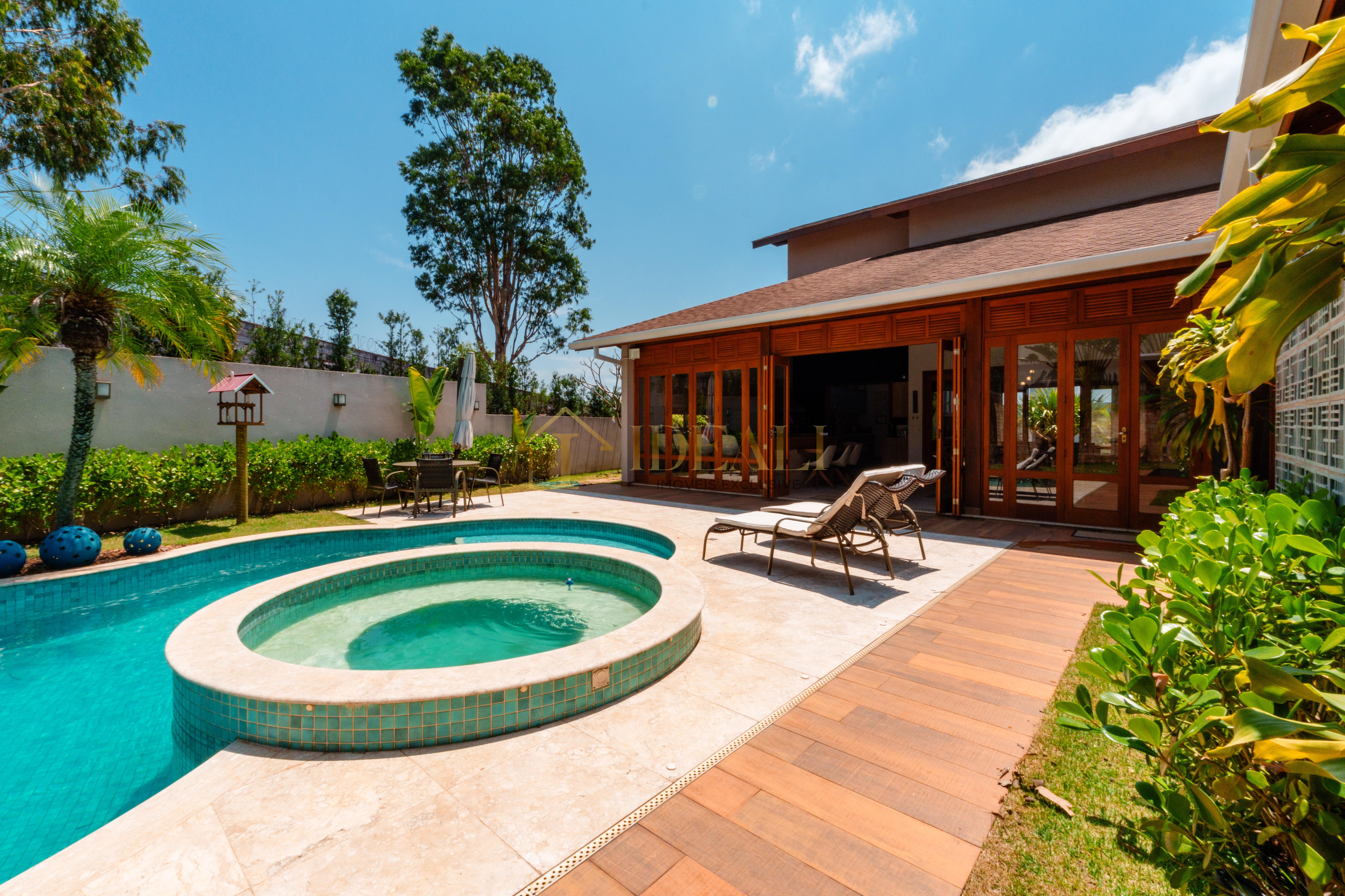 São 355 metros de área construída e 793 metros quadrados de área de terreno, abrigando uma casa com 3 suítes amplas, três salas, cozinha americana, despensa, lavanderia, piscina e jardim gramado, além de uma garagem coberta para dois carros.